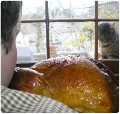 My mom & my sister constructed little bonnets & hats out of scrapbook paper, filled some baskets with bread & fruit, & substituted a chicken costume for our pup in lieu of a turkey outfit. It was pretty windy yesterday in Georgia & best we tried we couldn't get Hazel to face the camera, but maybe next year we will perfect the shot. Perfection was attained, however, in the form of a 26 pound turkey.
